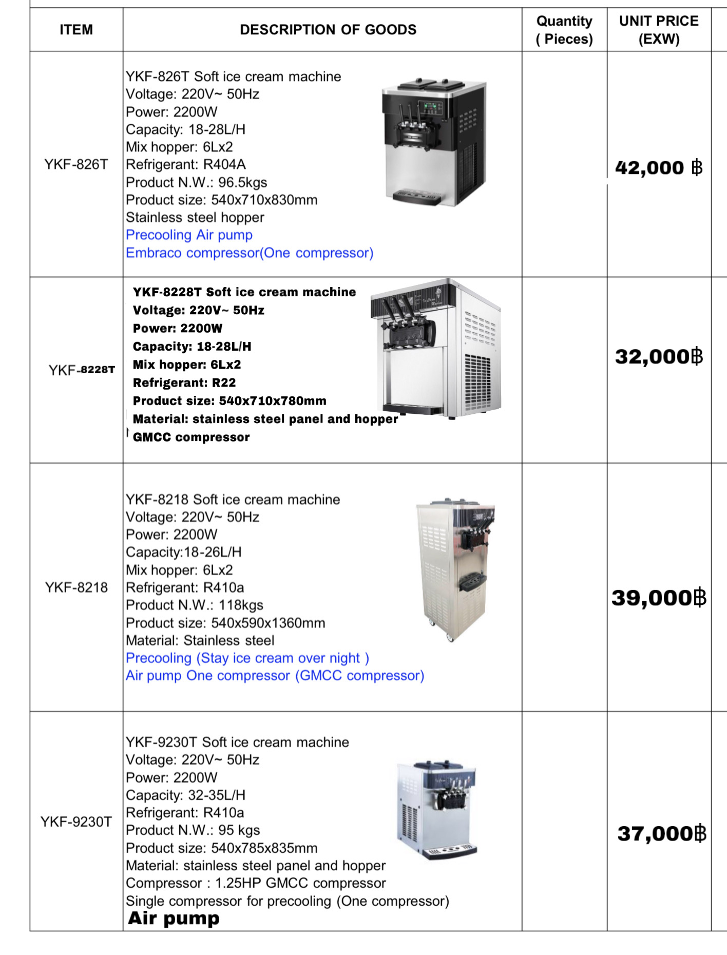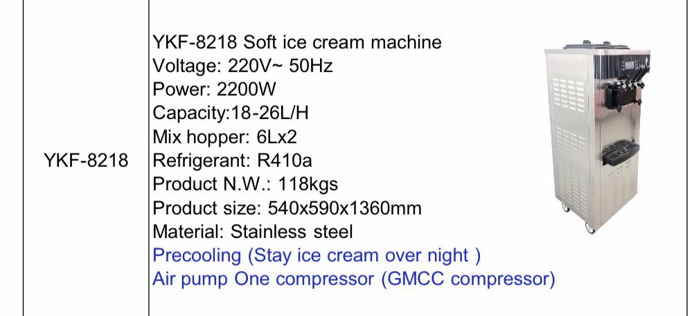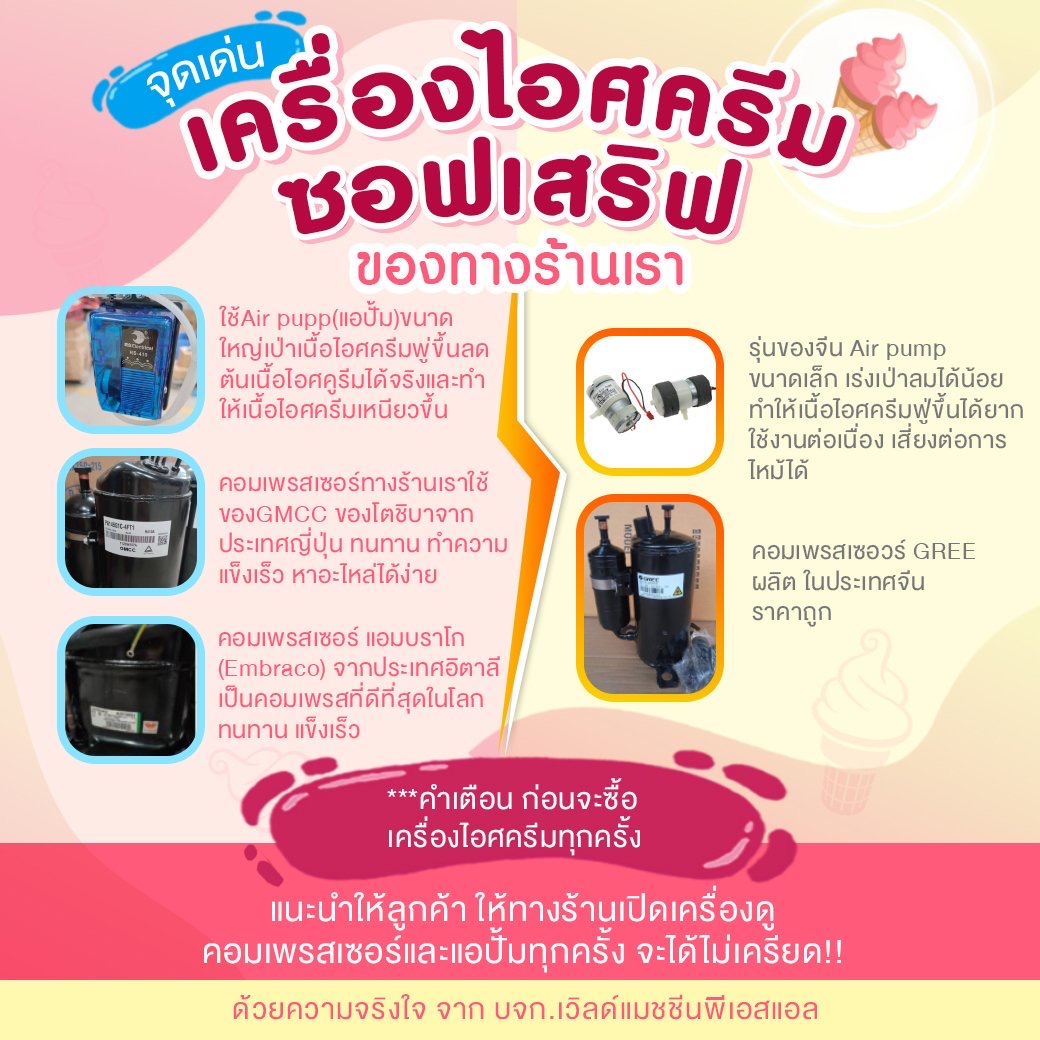 Precooling (ระบบพีคลูลิ่ง) ช่วยให้ไอศครีมสดใหม่ระหว่างวันไม่ให้ไอศครีมเสียในช่วงอากาศร้อน) ไม่ต้องล้างเครื่องทุกวัน) (stay ice cream mix over night)