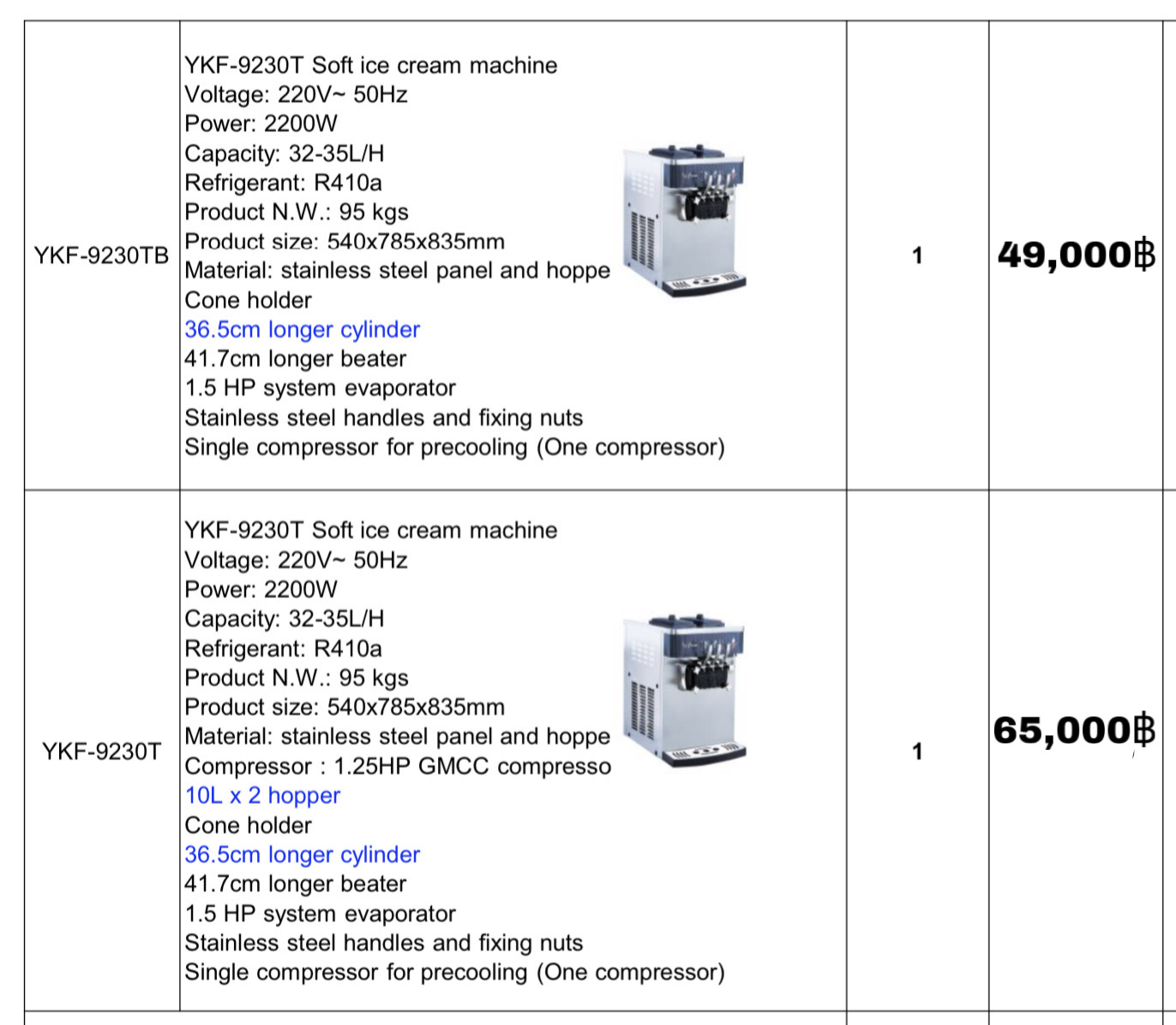 กำลังไฟ: 2200 วัตต์ (กำลังไฟยิ่งมากไอศครีมยิ่งแข็งเร็ว)